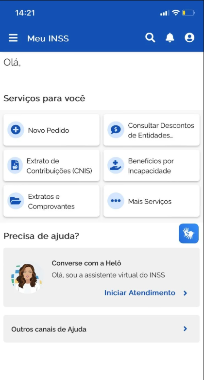 - Clique em “Pedir Novo Benefício por Incapacidade” dentro da área de serviços disponíveis;