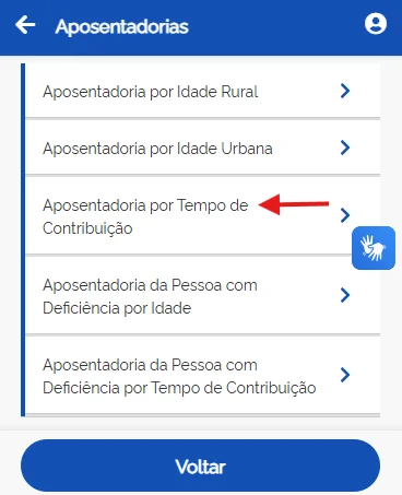 - Clique na aposentadoria que você deseja solicitar: