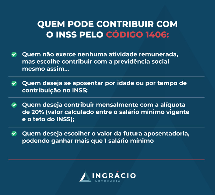 Só podem contribuir com o INSS pelo código 1406 os chamados contribuintes facultativos do INSS.