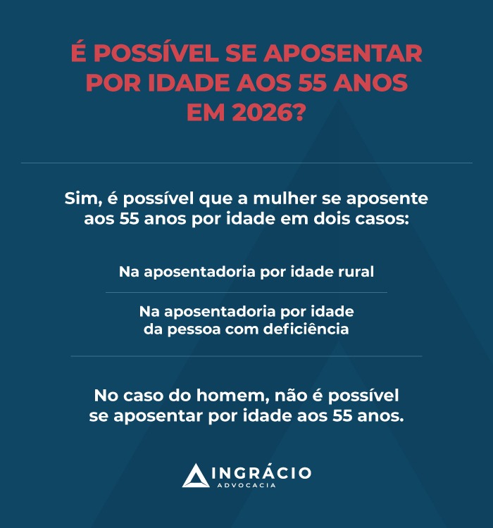 - Se é possível se aposentar aos 55 anos de idade pelo INSS;