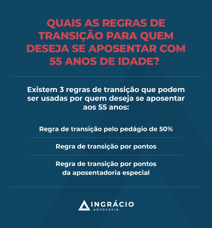Quais são as regras de transição possíveis para quem tem 55 anos de idade?