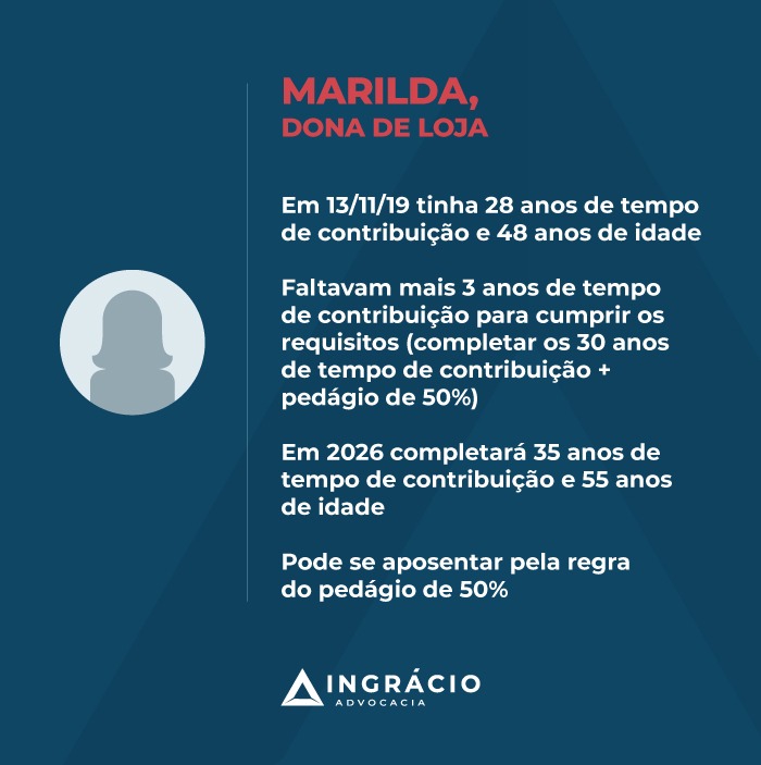 - cumprir o pedágio de 100% do tempo que faltava para completar os 30 anos de contribuição em 13 de novembro de 2019.