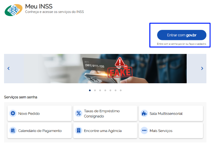 - Acesse o site ou aplicativo do Meu INSS e faça o login com a sua conta GOV: