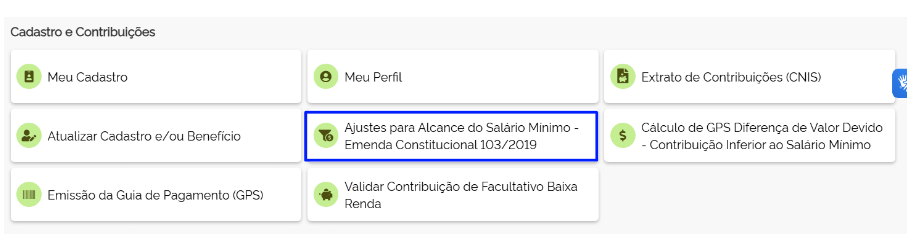 4- Busque a opção “Ajustes para Alcance do Salário Mínimo Emenda Constitucional 102/2019” e clique nela: