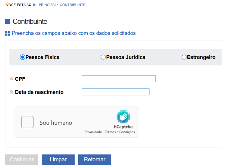 2- Preencha o seu número de CPF (segurado), sua data de nascimento e clique em Continuar: