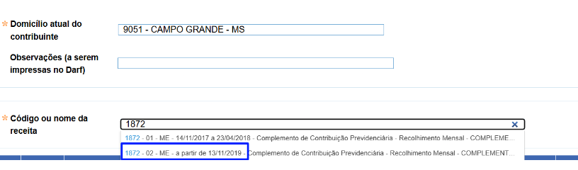 3- Confirme o município onde você mora e preencha o código de receita 1872: