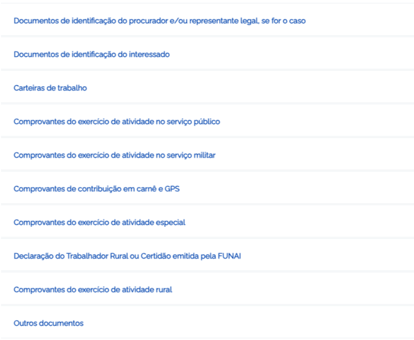 - CTC (Certidão de Tempo de Contribuição);