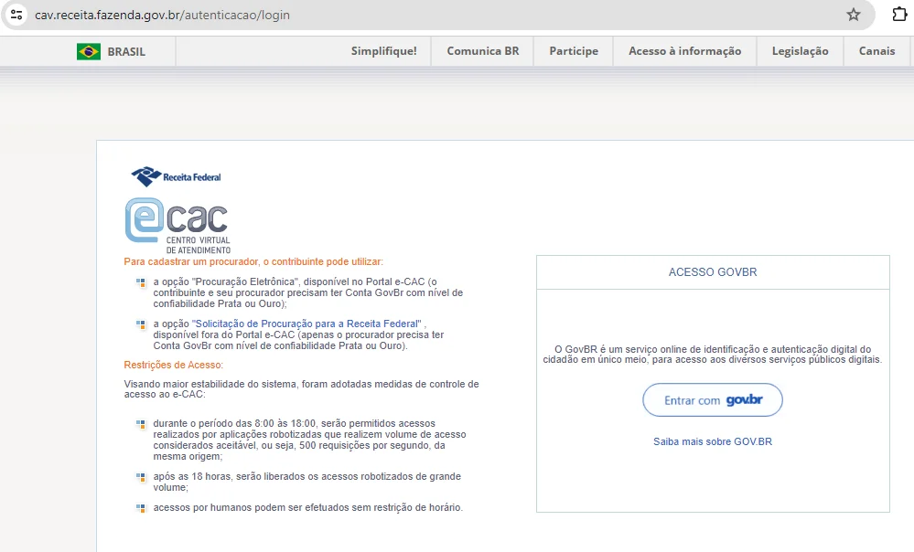 Primeiro de tudo, é importante você saber que deverá acessar o Portal e-CAC com o mesmo login e senha que acessa o sistema gov.br ou o site ou aplicativo Meu INSS.