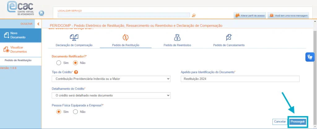 - Clique em “Prosseguir” no canto inferior direito da tela: