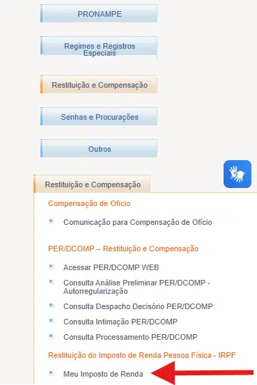 - no menu principal, procure pela opção Meu Imposto de Renda (Extrato da DIRPF);