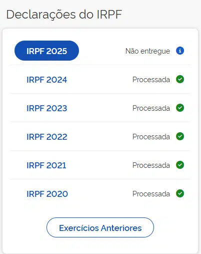 - Nesta seção, você poderá consultar as declarações de anos anteriores e verificar o status da sua restituição (se está em análise, se já foi liberada, ou se caiu na malha fina).