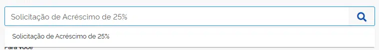 Procure por “Solicitação de Acréscimo de 25%” na barra em que aparece uma lupa: